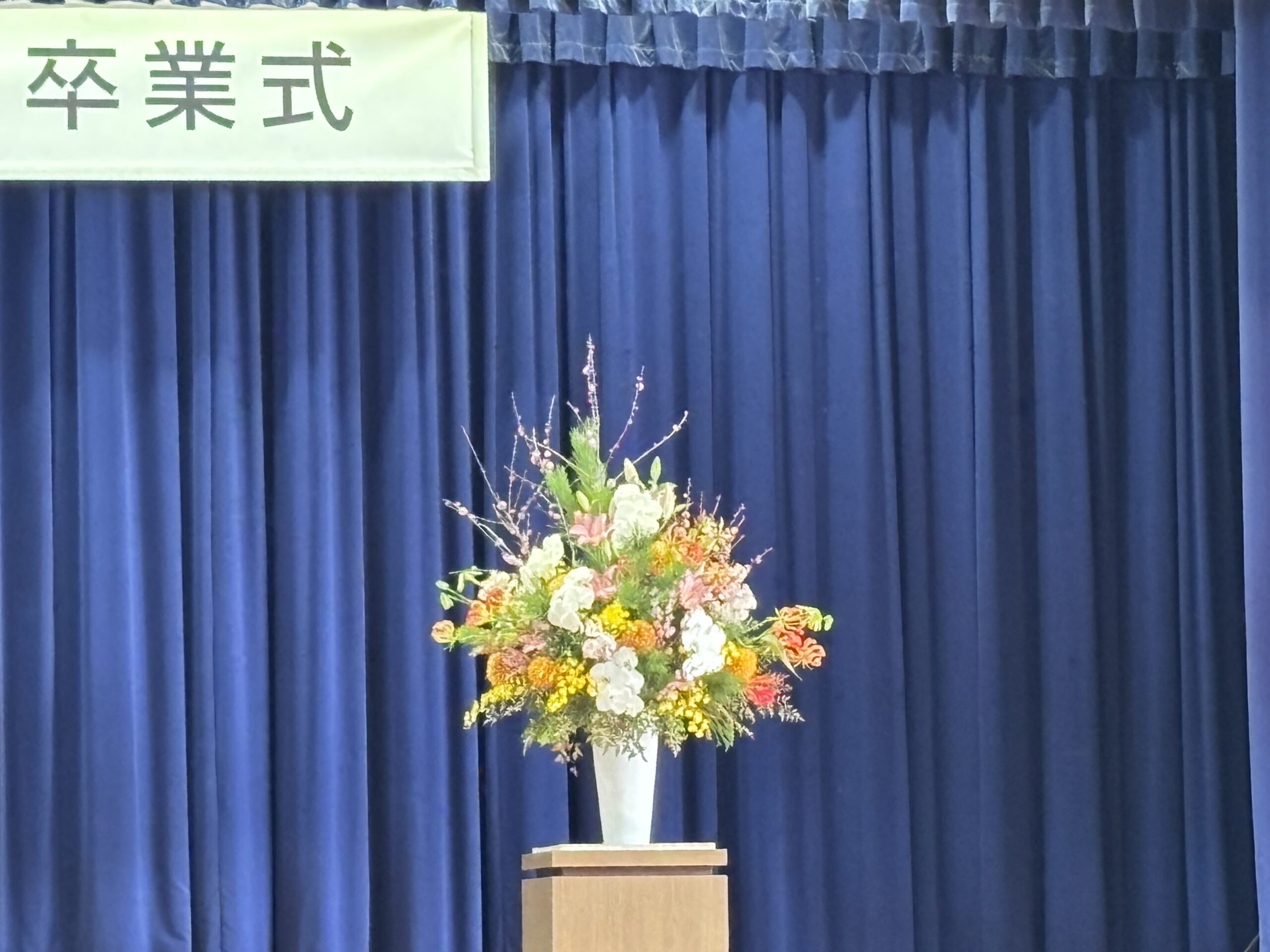 体育館に到着すると、真っ先に目が捉えたのは壇上に掲げられた国旗。3年前の入学式と同じ光景は、達成感なのか、充実感なのか、安堵感なのか、さまざまな想いが去来します。遠くを見つめる私。思考力ゼロ。なのに、心の中で静かに湧き上がる言葉があります。